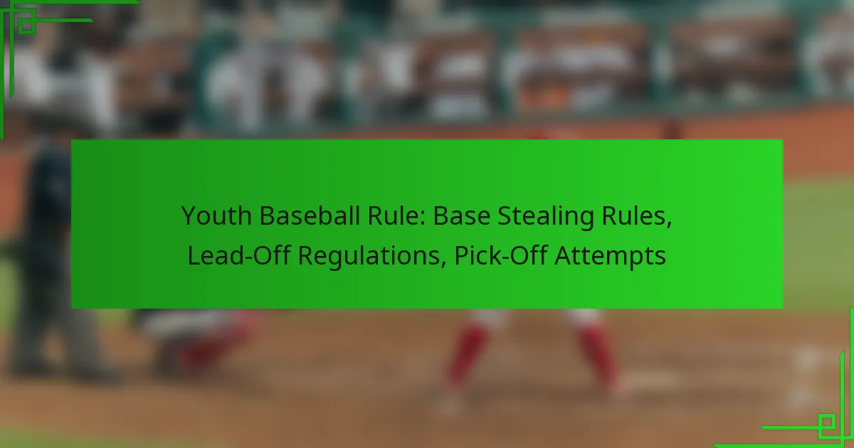 In youth baseball, base stealing is a key component that allows players to advance to the next base while the pitcher delivers the ball, with rules tailored to prioritize safety and skill development. Lead-off regulations dictate how players can move before the pitch, varying by league and age group, which significantly influences gameplay strategies. Additionally, pick-off attempts are designed to challenge base runners while adhering to specific guidelines that ensure a focus on the players’ growth and safety.